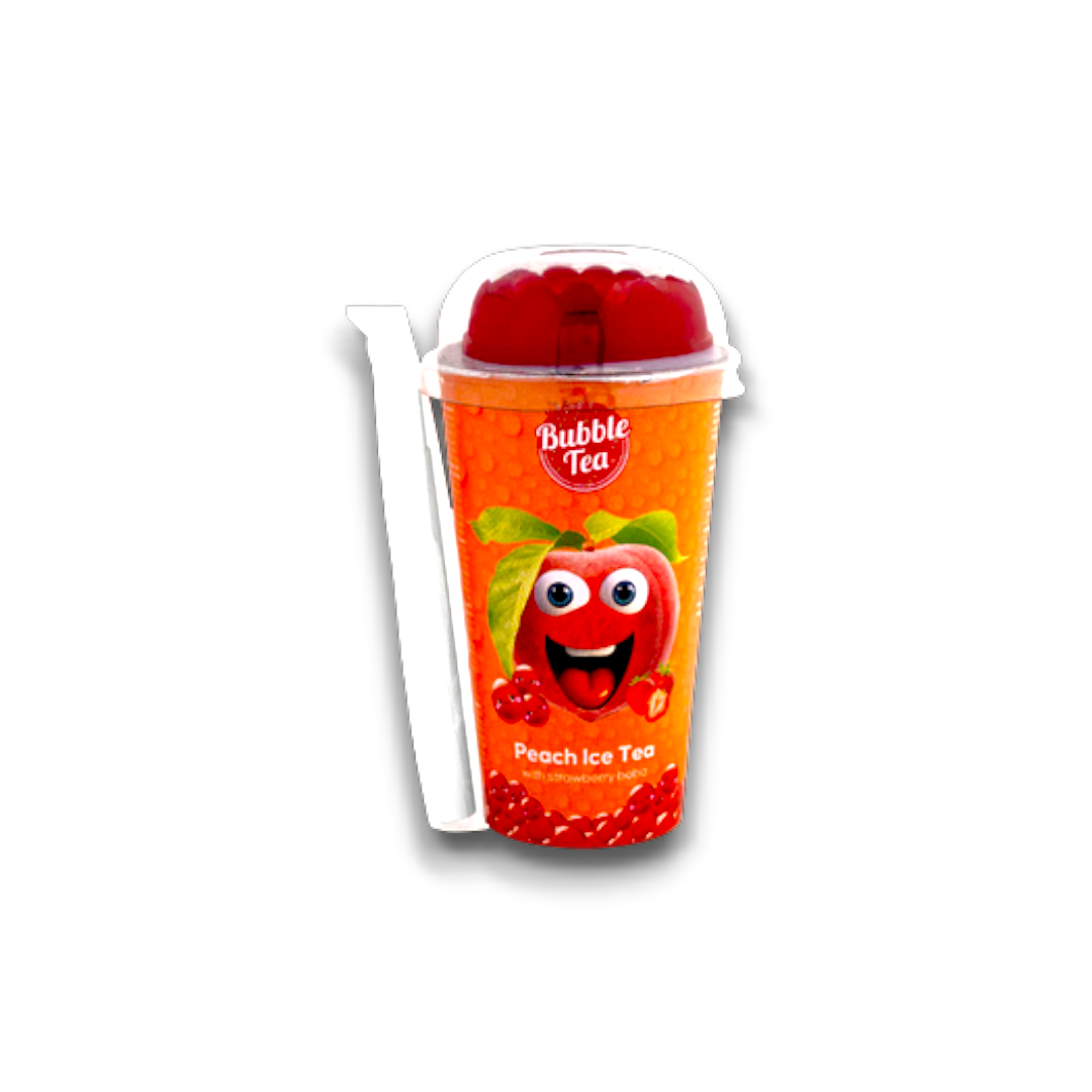 Bubble Tea (Strawberry Boba) Ice Tea Peach is a refreshing and flavorful beverage that combines the sweetness of strawberry and the smoothness of peach with the fun and chewy texture of boba pearls. Its key features include a delightful blend of fruity flavors, the addition of boba pearls for a unique texture, and the refreshing quality of an iced tea base. The benefits of this product include a satisfying and enjoyable drinking experience, the ability to customize sweetness levels, and the option to add toppings for added variety. Its unique selling points lie in its combination of popular fruit flavors, the inclusion of boba pearls, and the versatility to cater to individual preferences.