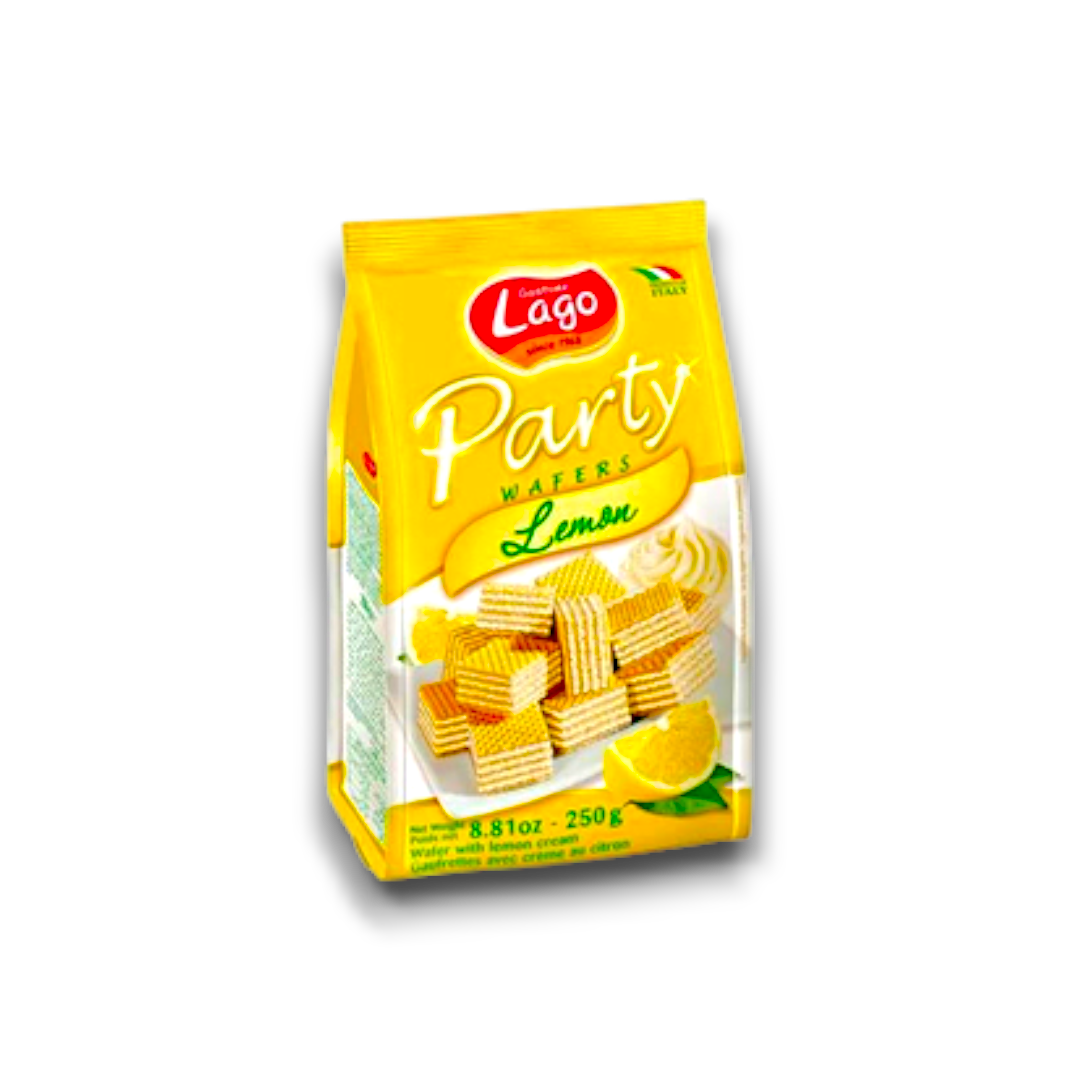 Elledi Party Wafers Lemon are delicious and refreshing wafer cookies. Their key features include a zesty lemon flavor, a crispy wafer texture, and a convenient party-sized packaging. These wafers are perfect for parties, gatherings, or as a tasty snack. Their unique selling points are their tangy lemon taste, which adds a burst of flavor, and their convenient packaging, making them ideal for sharing. Enjoy the delightful combination of lemon and wafer in Elledi Party Wafers Lemon.