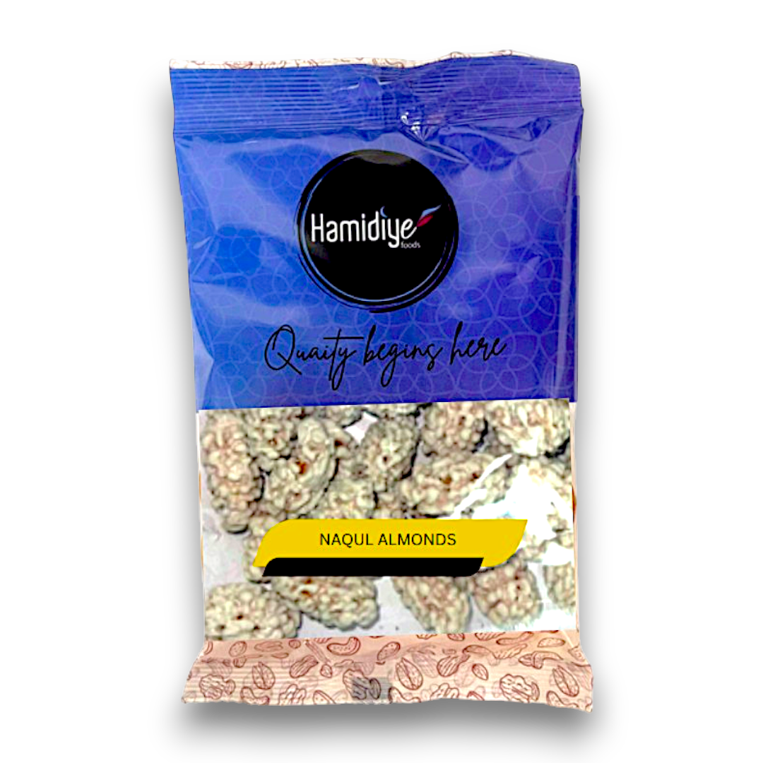 Hamidiye Naqul Almonds (Sugar Coated) are a premium snack that offers a delightful combination of crunchy almonds and a sweet sugar coating. These almonds are carefully selected for their superior quality and taste. The sugar coating adds a delicious sweetness to the almonds, making them a perfect treat for any occasion. With their unique flavor and texture, Hamidiye Naqul Almonds are a standout choice for those seeking a delectable and satisfying snack.