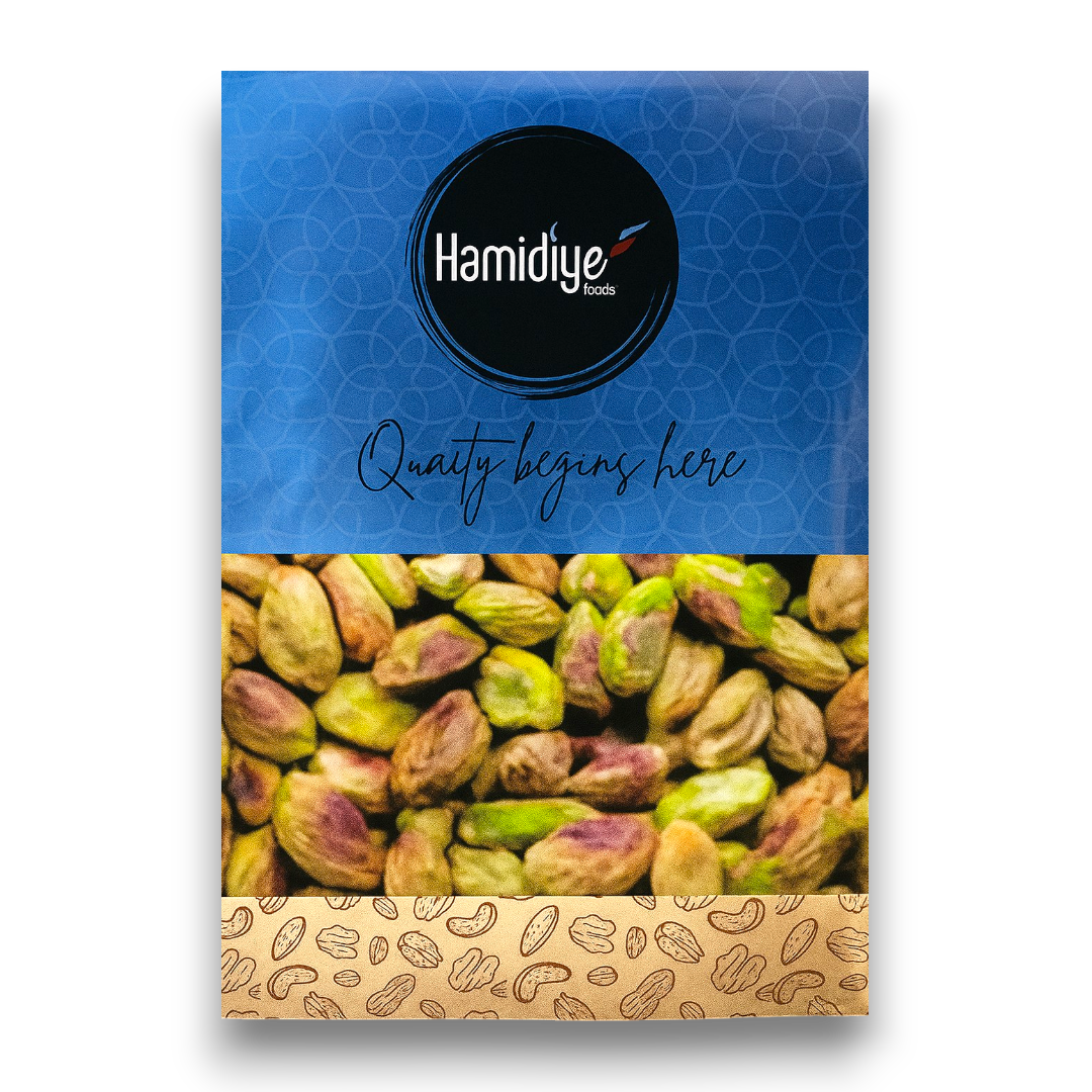 Hamidiye Raw Pistachio Kernels (Nut Bag) are high-quality pistachio kernels that offer a range of key features, benefits, and unique selling points. These kernels are sourced from the renowned Hamidiye region, known for its exceptional pistachios. The product is packed in a convenient nut bag, ensuring freshness and easy storage. The raw nature of the kernels preserves their natural flavor and nutritional value. With their rich taste and crunchy texture, these pistachio kernels make for a delicious and healthy snack. They are also versatile, suitable for various culinary uses, such as baking, cooking, or adding to salads. Hamidiye Raw Pistachio Kernels (Nut Bag) are an excellent choice for those seeking premium quality, freshness, and the authentic taste of Hamidiye pistachios.